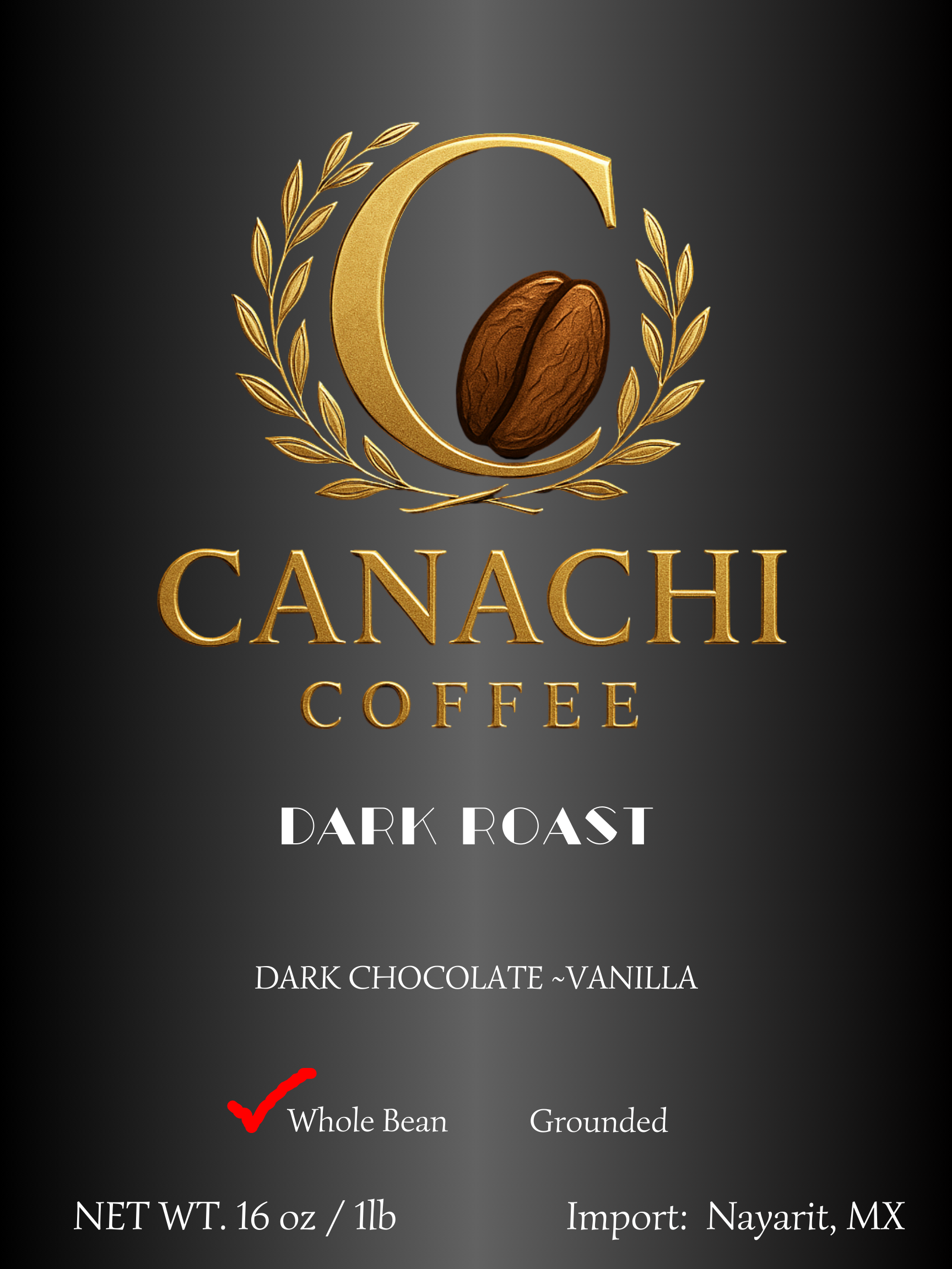 Whole Bean Canachi Coffee Dark Roast 16oz/1LB